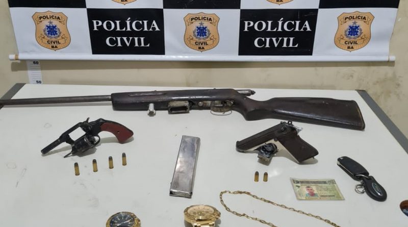 Os policiais encontraram as armas em posse de dois homens, que trafegavam em um carro, no bairro Jambeiro, em Santo Antônio de Jesus. Com eles, foram apreendidos um revólver calibre 32, uma pistola .635, com numeração suprimida, e um rifle artesanal.
