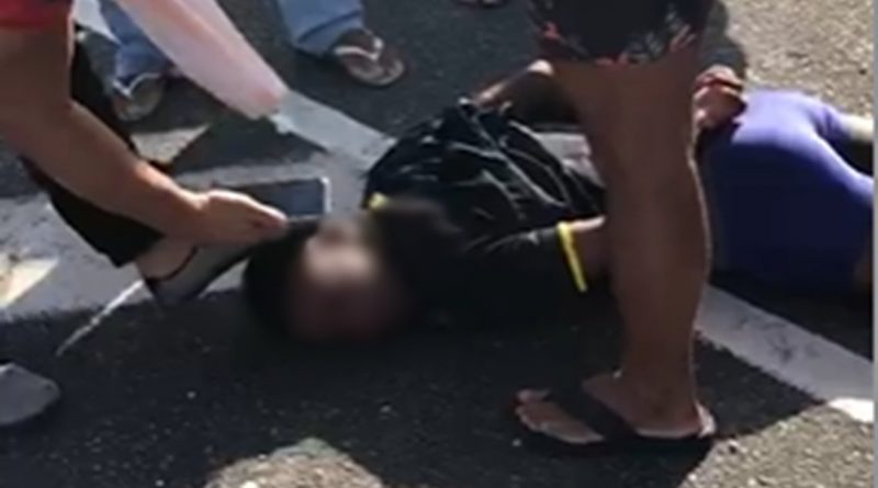 Em um vídeo compartilhado nas redes sociais, é possível ver o homem correndo. Depois, aparece um segundo homem, o seguindo. O suspeito tenta atravessar a rua,mas é recebido com um murro por um motociclista.