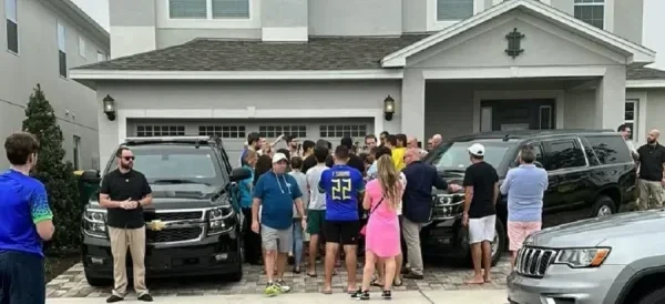 Apoiadores de Jair Bolsonaro concentrados na frente da casa que hospeda presidente em Orlando, na Flórida.