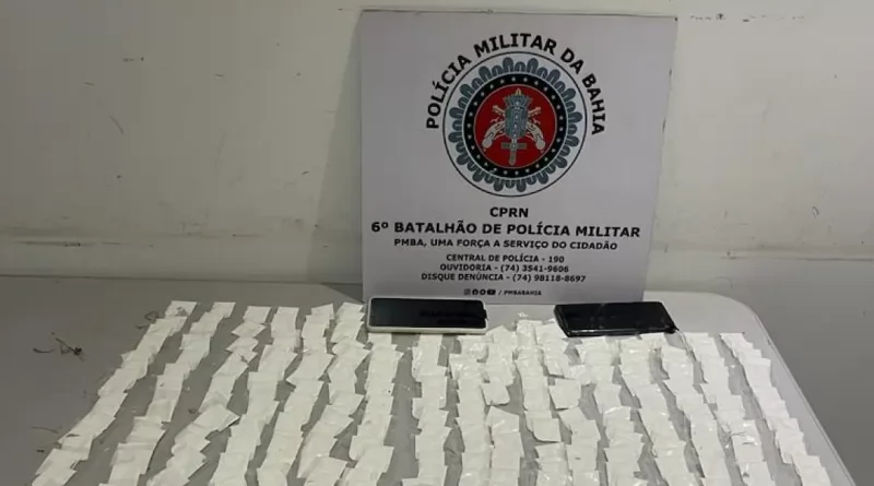 Mais de 370 porções de cocaína foram apreendidas na noite de sexta-feira (20/1) pelo 6° Batalhão de Polícia Militar. O flagrante aconteceu no município de Andorinha, no interior da Bahia.