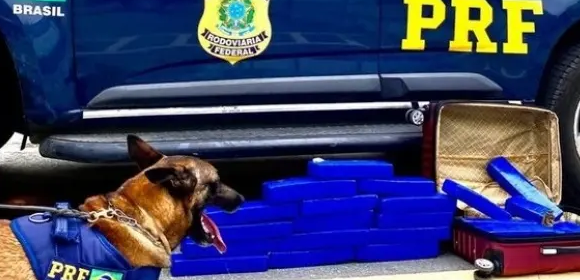 A Polícia Rodoviária Federal (PRF) apreendeu, nesta segunda-feira (04), 20 quilos de maconha no Km 830 da BR 116, em Vitória da Conquista (BA). A ação ocorreu com a ajuda do cão farejador K9 Kaleo.