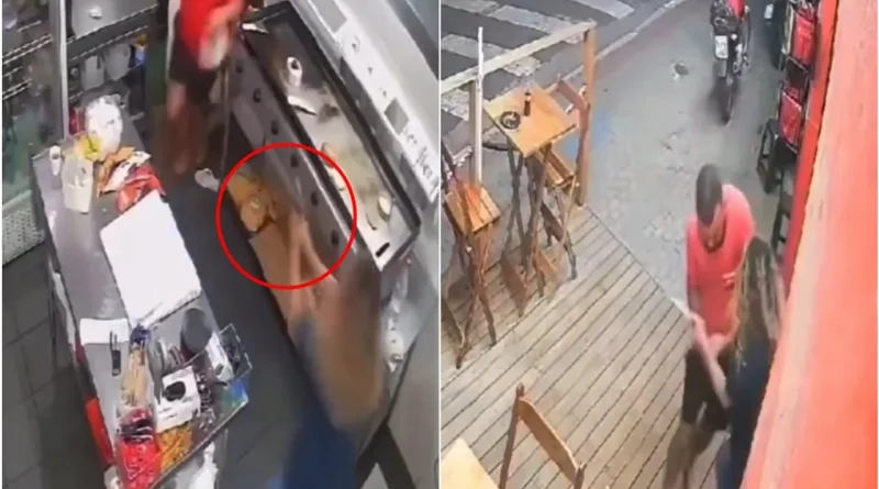Nas filmagens é possível ver a mulher sacar um revólver e perseguir o companheiro até a cozinha do estabelecimento. Funcionários tentam correr enquanto a mulher avança e atira no rapaz. Em outro vídeo, vemos ela e o alvo do atentado entrando em luta corporal na entrada da lanchonete e no meio da rua.