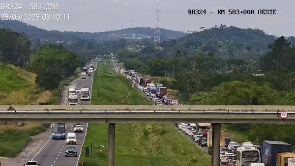 De acordo com a Polícia Rodoviária Federal (PRF), o tráfego na BR-324 apresenta pontos de lentidão nos seguintes trechos: KM 540; KM 551 a 558; KM 583 a 599; KM 601 a 605.