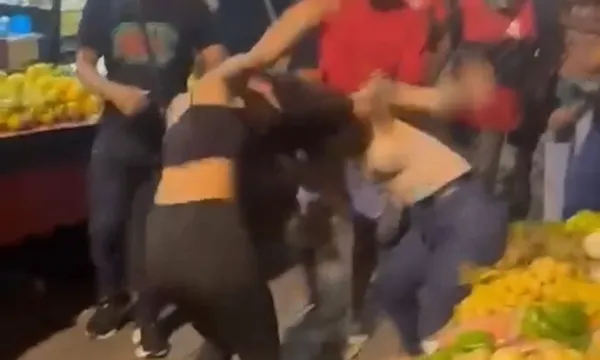 Vídeos mostram as duas trocando agressões físicas em meio às barracas. Nas imagens, é possível ver feirantes e populares tentando separar as envolvidas, enquanto outras pessoas registram a confusão com os celulares.