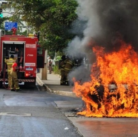 Um carro da marca Peugeot pegou fogo na manhã desta terça-feira (22) na avenida Anita Garibaldi, uma das principais vias de Salvador. O veículo estava próximo a um ponto de ônibus quando as chamas se intensificaram, por volta das 7h.