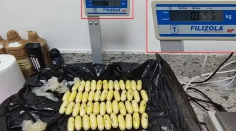Passageira levava 655 gramas da droga no corpo e ingeridos; prisão preventiva foi decretada.