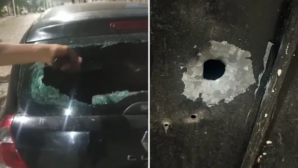 Em vídeos enviados é possível ver que carros e casas foram atingidos pelos disparos.