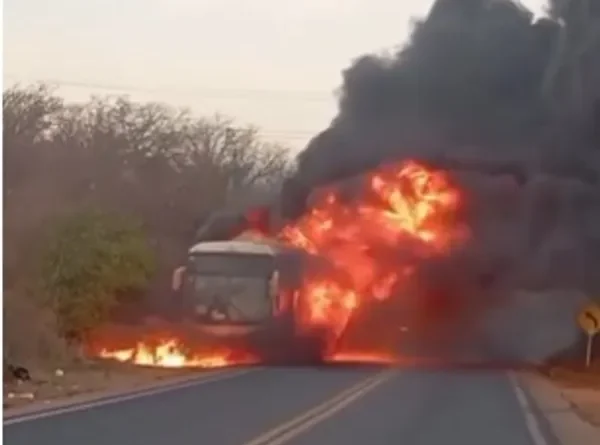 Ônibus pega fogo na estrada próximo a Caetité no sudoeste baiano.