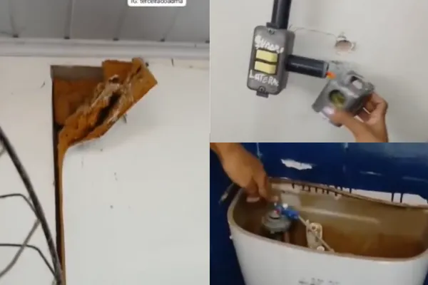 De acordo com o vídeo, a falta de manutenção na escola vai além das pragas. Os alunos denunciam também problemas no forro do teto. Em tom de deboche, afirmam: “o teto é participativo. A cada dia cai mais um pouquinho para interagir com os alunos.”