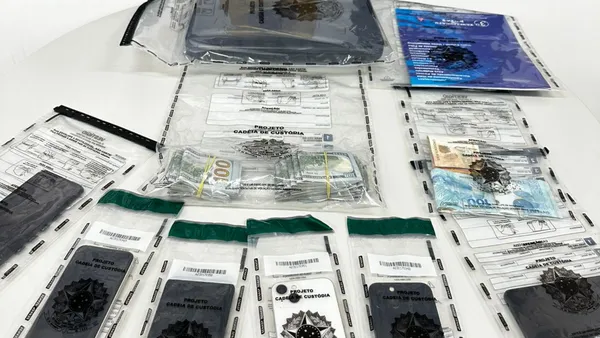 Polícia apreendeu 25 mil dólares, R$ 3 mil e celulares durante ação que investiga quadrilha do “Golpe do Bilhete Premiado”.