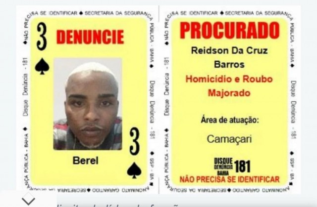 A Polícia Civil da Bahia prendeu, na manhã desta quinta-feira (25), Reidson da Cruz Barros, conhecido como “Berel”, integrante do Baralho do Crime da Secretaria da Segurança Pública (SSP). Ele ocupava a carta Três de Espadas e foi localizado no distrito de Monte Gordo, em Camaçari, durante mais uma fase da Operação Hunt.