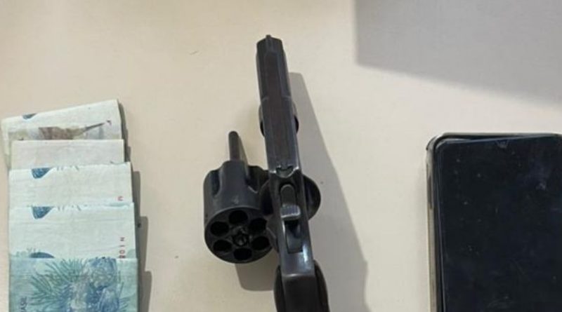 Durante rondas na localidade de Três Bocas, polícia apreendeu revólver calibre .38, munições, dinheiro e celular.
