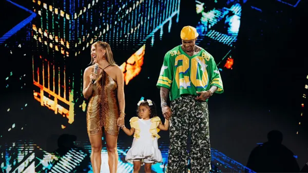 Léo Santana e Lore Improta revelam, durante gravação do DVD em Salvador, que o segundo filho do casal é um menino.